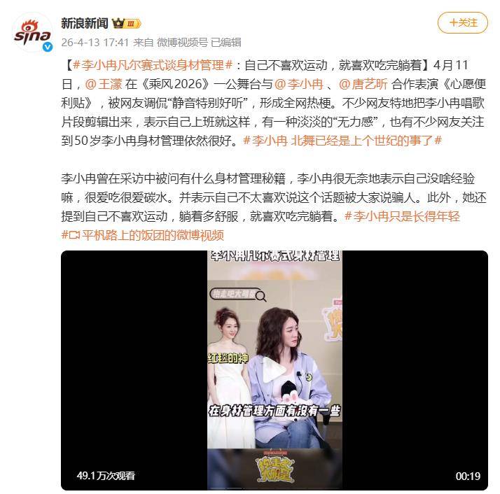 可当网友真去扒她的采访,得到的答案却让人直呼“凡尔赛天花板”。此前被问及身材管理秘诀时,李小冉一脸无奈地表示自己“没啥经验嘛”,并强调自己“很爱吃很爱碳水”。她甚至坦言不太喜欢聊这个话题,因为“怕被大家说骗人”。至于运动?她的态度更是“躺平”到底:“不喜欢运动,躺着多舒服,就喜欢吃完躺着。”